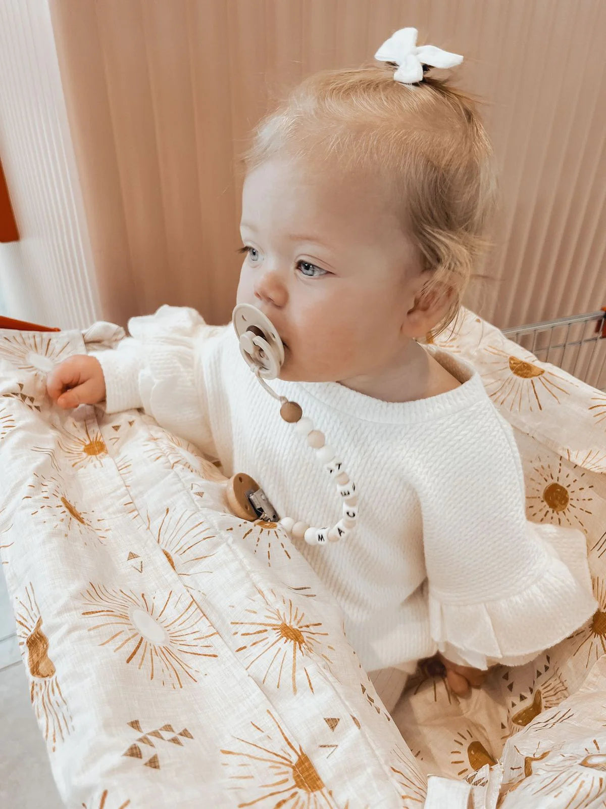 A modern day must have! Bambella Trolley liners are the simplest way to protect your little ones from germs and other nasties. They also provide a comfortable place for your bub to sit when out and about. Our liners are designed to cover the trolley, with extended fabric sides for added protection. The easy fit velcro ties secure the liner and ensure a snug fit, with slots on the back so that the safety belts can still be used.