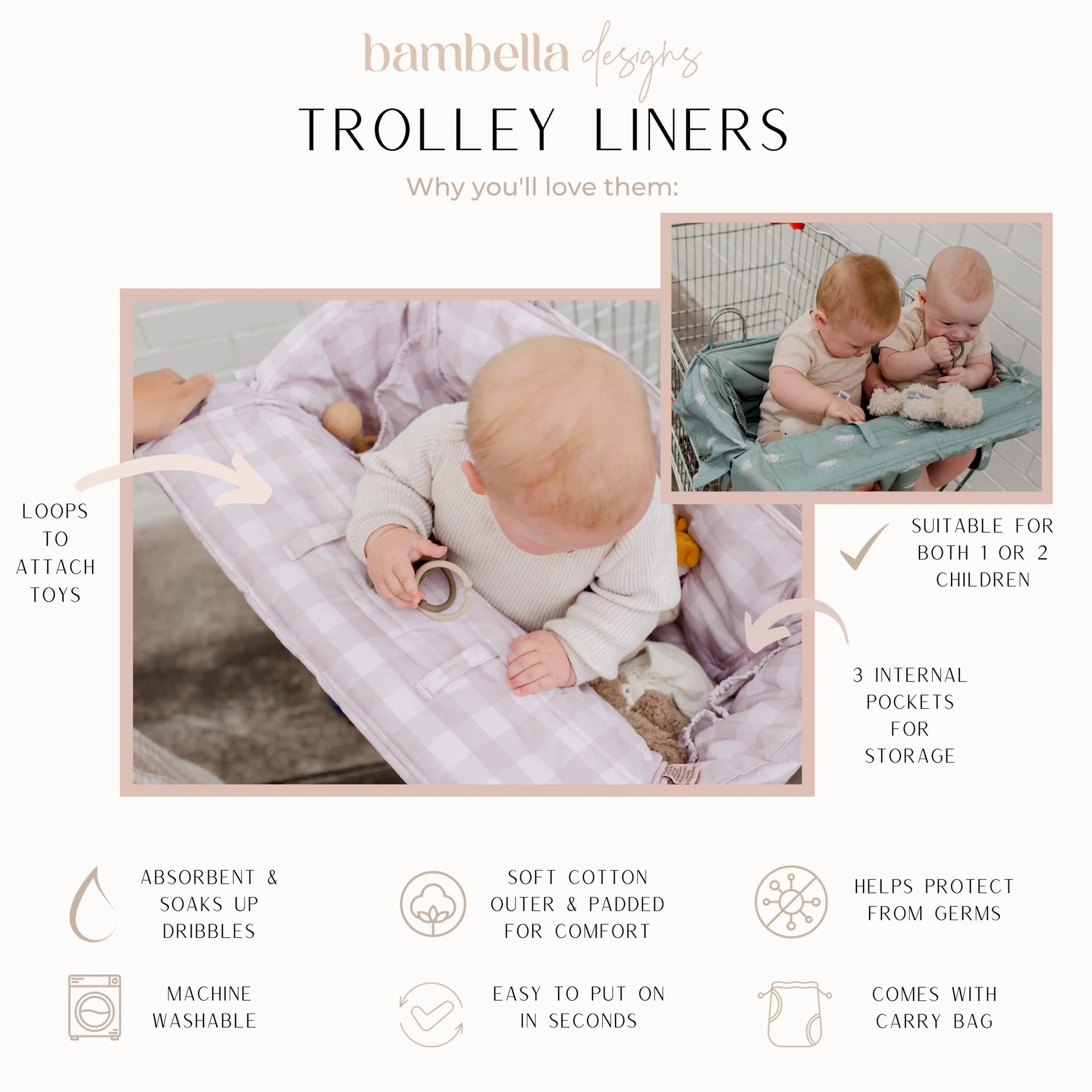 Bambella Trolley Liners are a universal fit, designed to fit both smaller single trolleys, as well as the newer wider designed double trolleys. They can be used with 1 or 2 children at once.