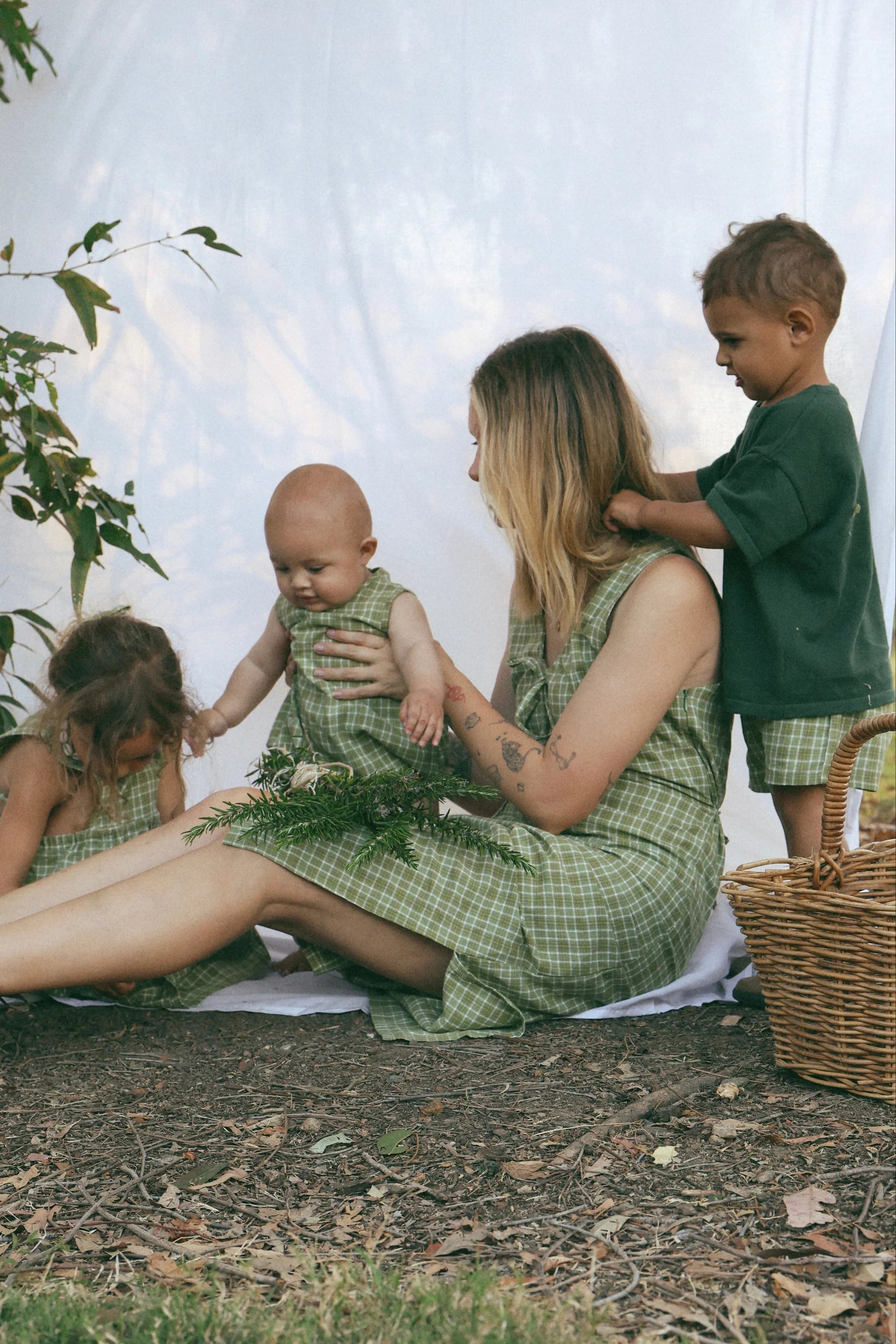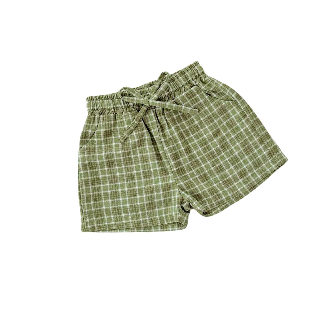 Cotton shorts with an elastic waist in our Thyme fabric.