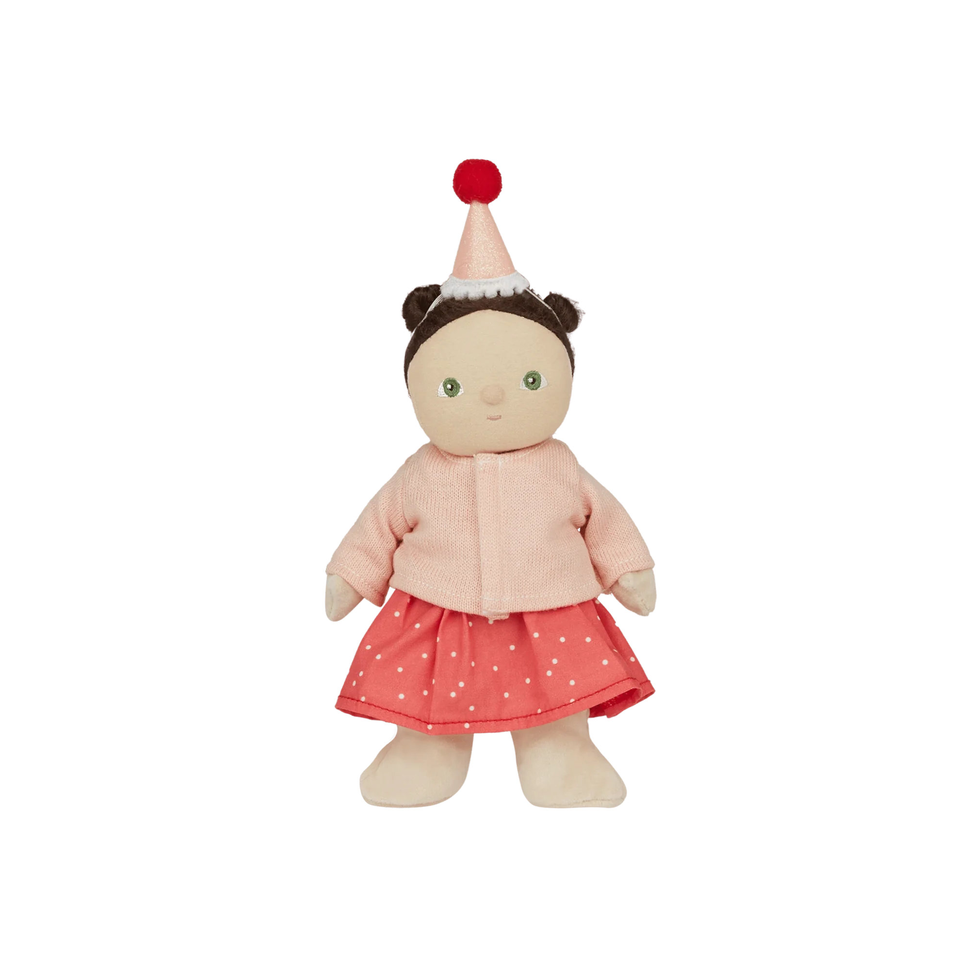 Meet Dozy Dinkum Pip – Strawberry, is back in town due to popular demand! With its adorable strawberry pattern, this cuddly companion is perfect for your baby’s first toy and keepsake. Made from the softest cotton, Pip features a posable design, a sweet embroidered face, a tuft of hair, and a non-removable onesie with a rainbow. Dozy Dinkum Pip – Strawberry is a wonderful gift for newborns and a lovely addition to any Dozy Dinkum Doll collection.