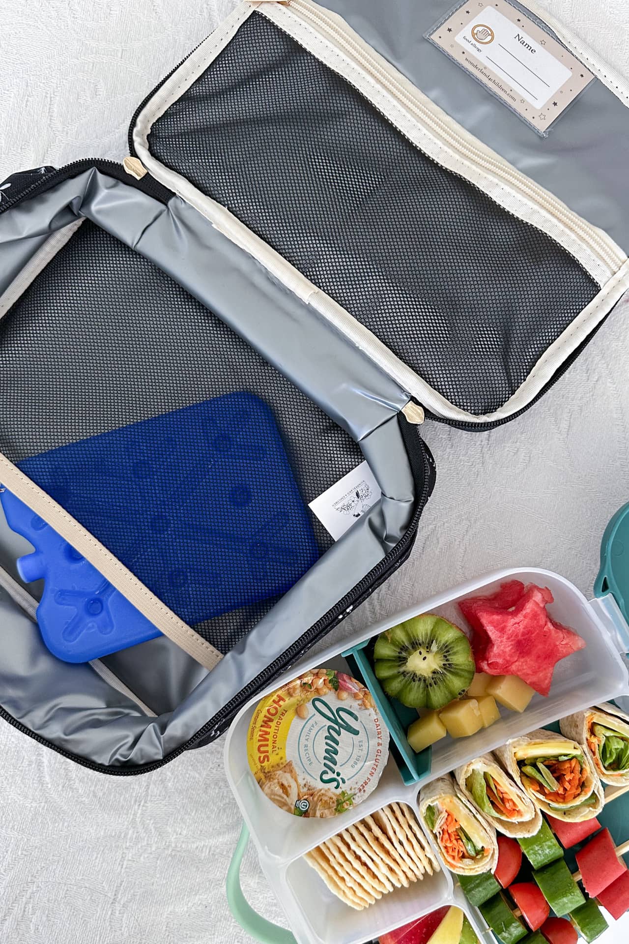 4: Two mesh sections included: a smaller zippered side for utensils and a larger side to keep an ice pack in place.