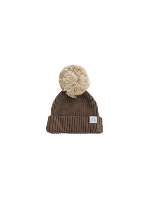 Beautiful chunky knit beanie in our two tone Cyrus colour with coloured pom pom.