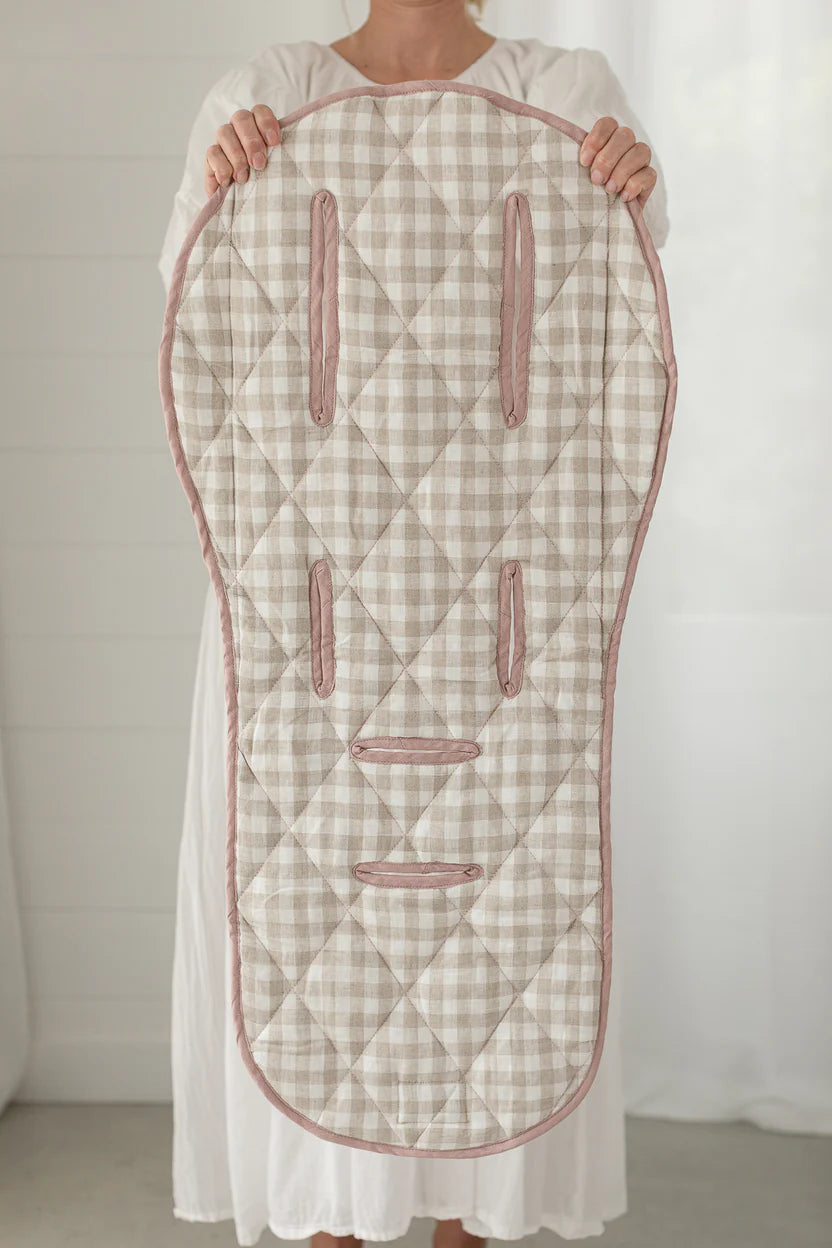 French Linen Pram Liner - Dusty Rose & Gingham – Mini Haven