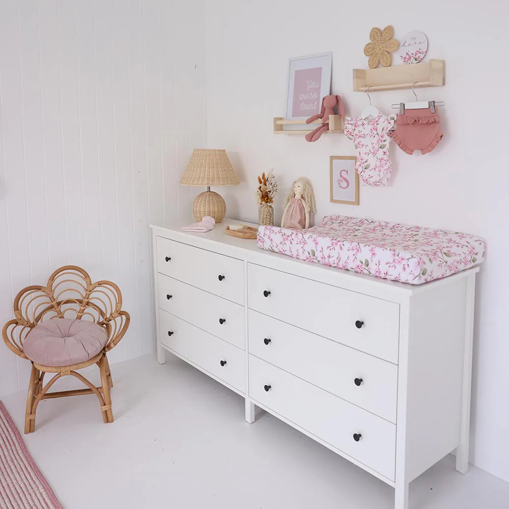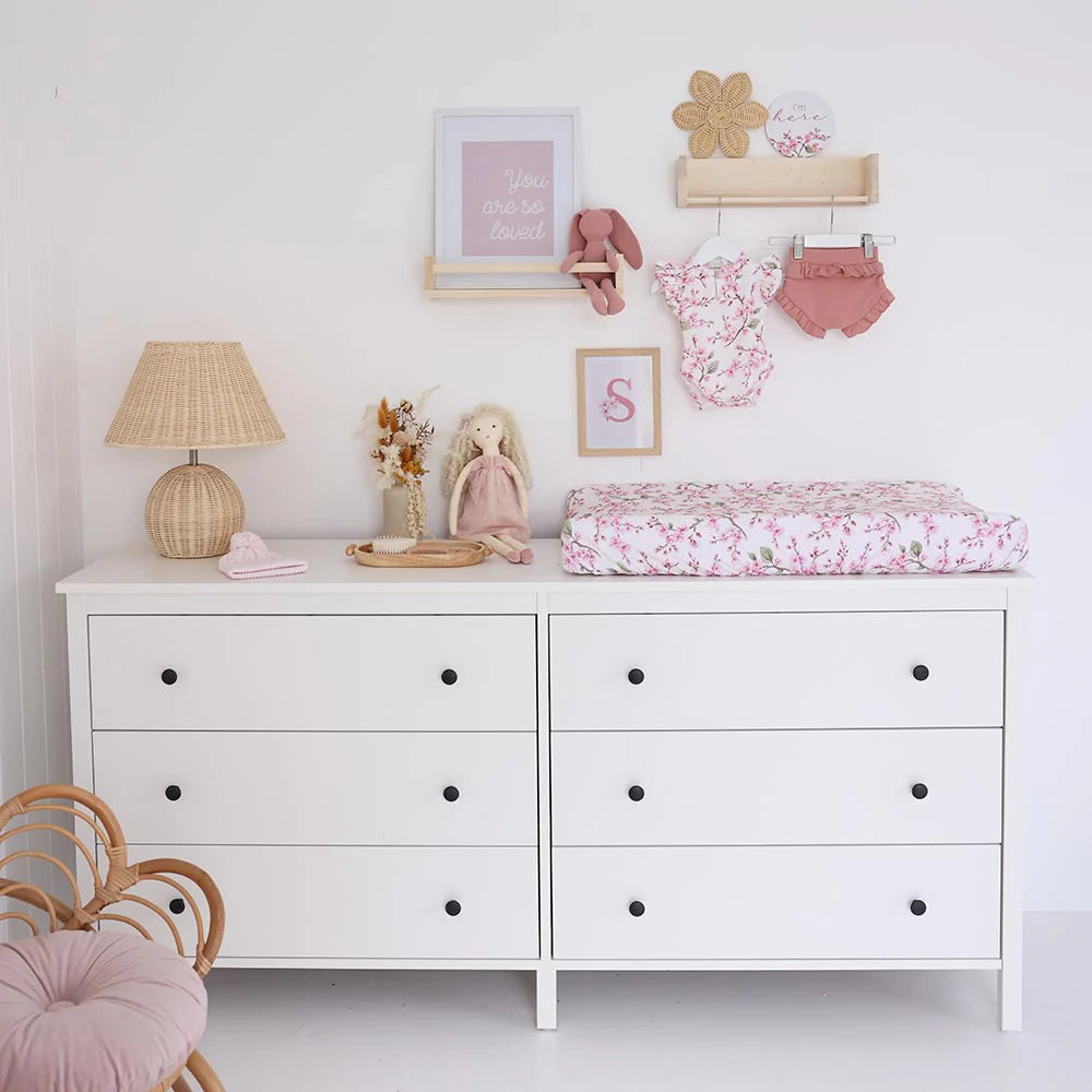 The gorgeous Cherry Blossom fitted nursery sheets are made from snuggly soft stretch cotton jersey. They come with a matching drawstring storage bag which can be used for other multi-purposes.
