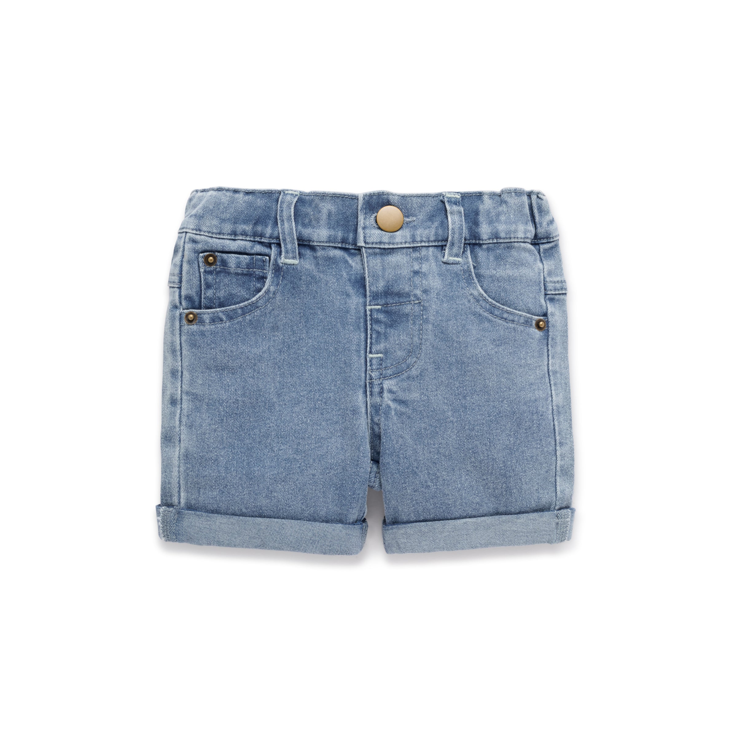 Made from natural cotton, these mid wash denim shorts feature rolled cuffs and functional pockets. Blended with spandex for a light stretch for comfort and movement.