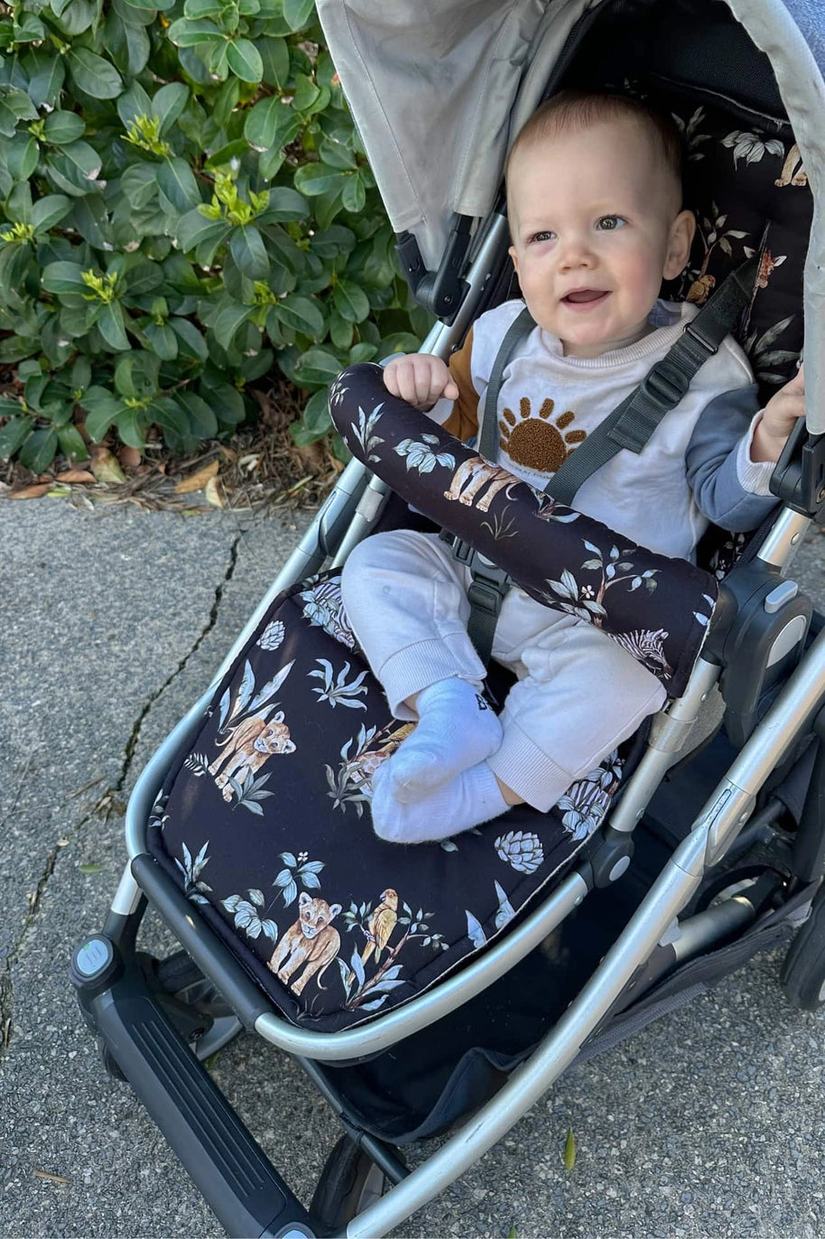 Reversible Pram Liner with a set of matching shoulder strap covers.