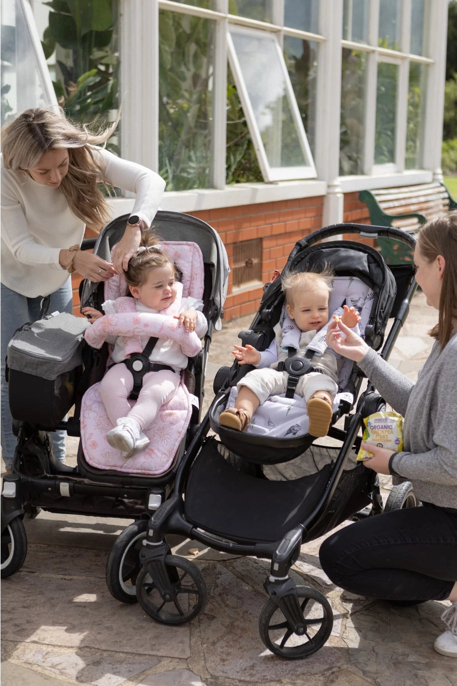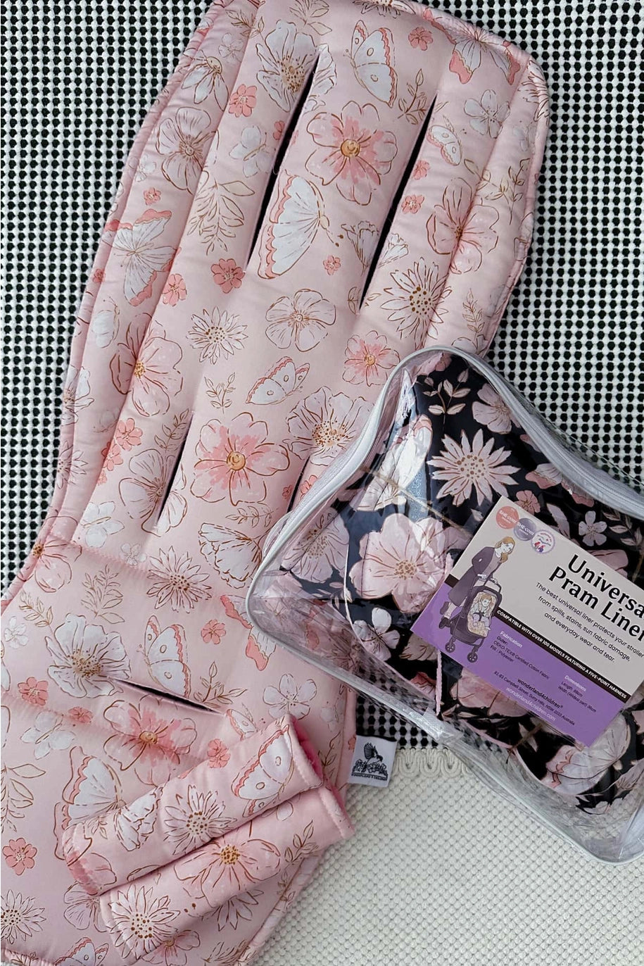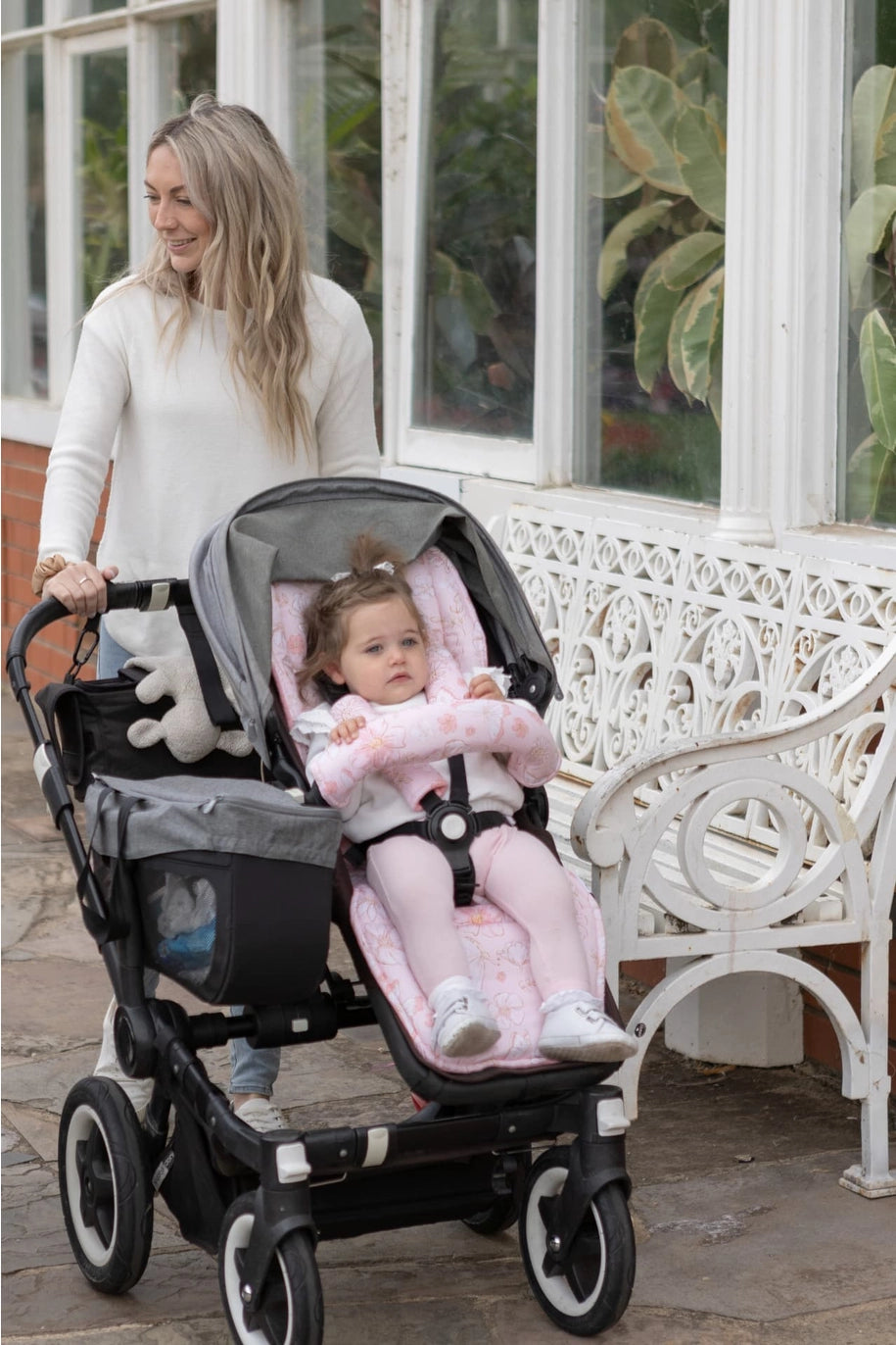 Reversible Pram Liner with a set of matching shoulder strap covers.