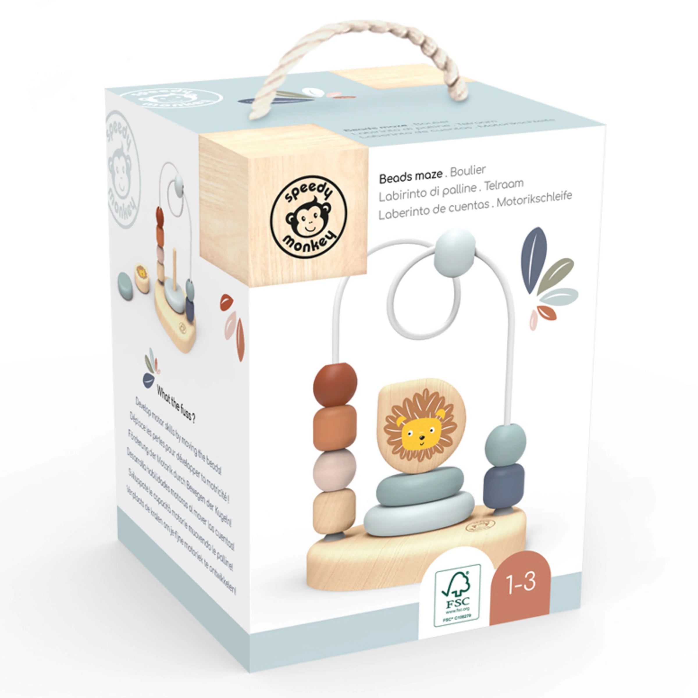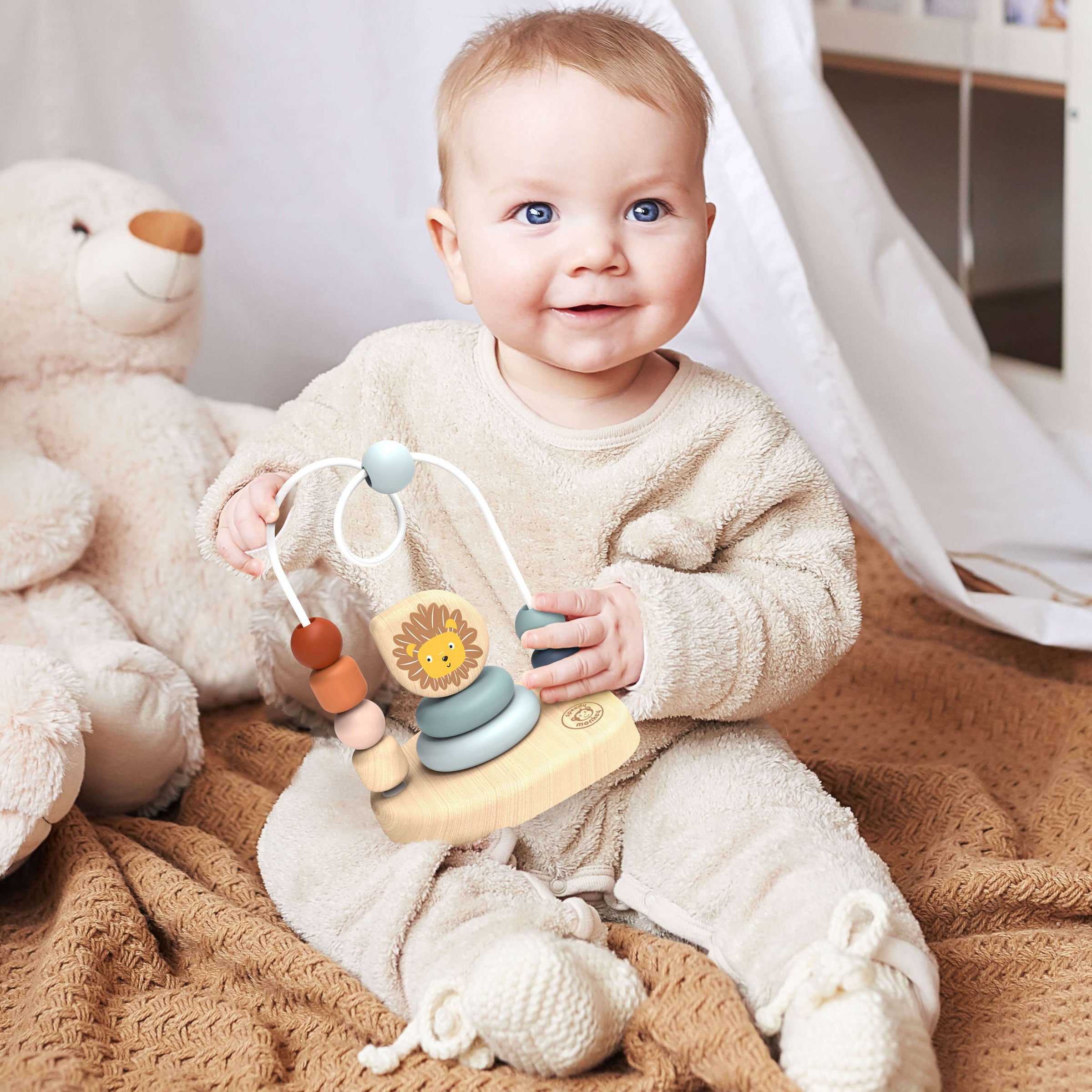Little hands can move the soft coloured beads over, under and across the wire bead frame as they go. This toy encourages dexterity, hand/eye coordination and colour recognition as toddlers guide the 7 beads from one side of the frame to the other. This toy is crafted from sustainably sourced wood from FSC® certified forests and coated with non-toxic paint.