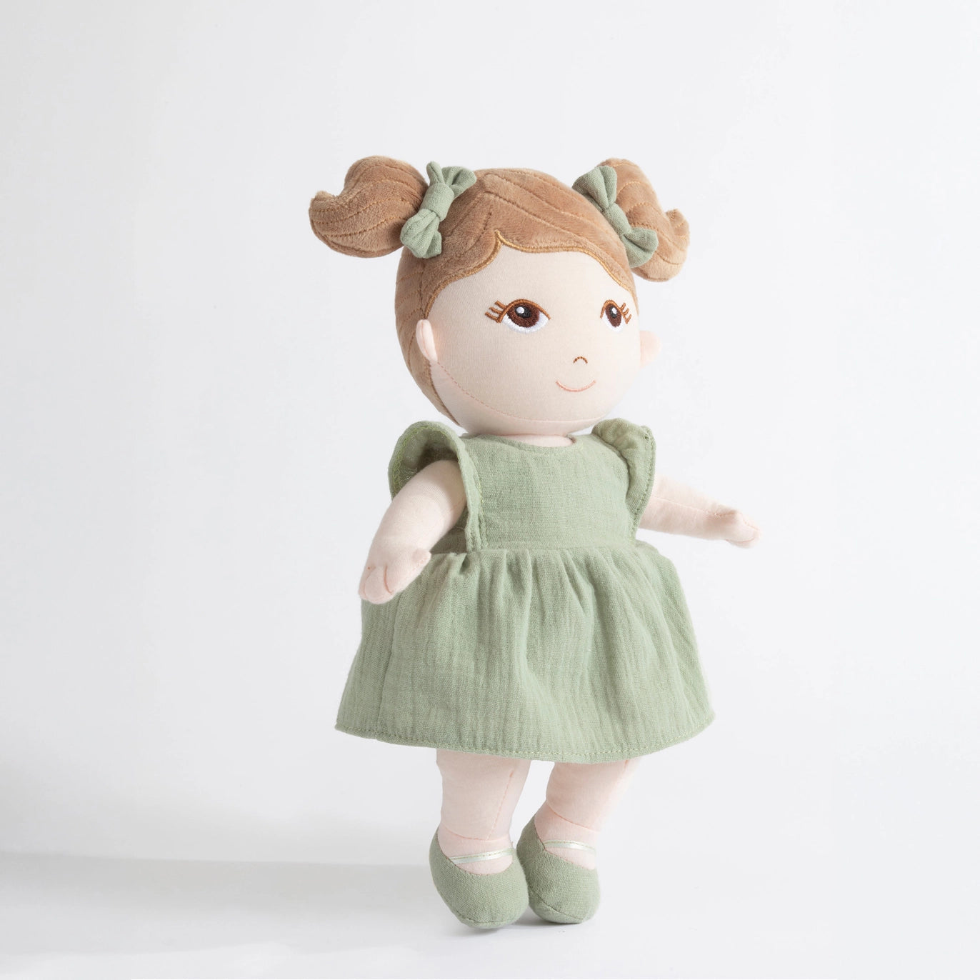 Featuring an endearing embroidered face, and 100% cotton muslin dress, Elena is sure to become baby’s favourite playtime friend.